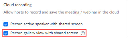 If you need to include the gallery view in your recordings (such as performing arts, meetings, proctoring, etc.), you will need to enable Record gallery view with shared screen.